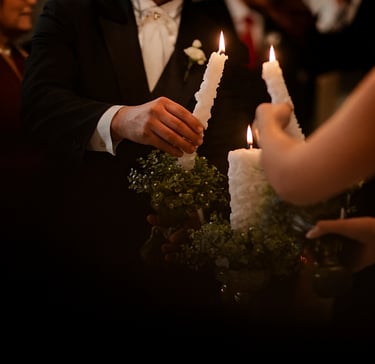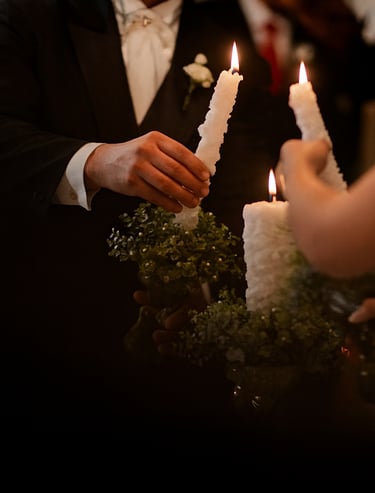 Ritual das Velas: Cada noivo acende uma vela e depois usa as suas chamas para acender uma vela maior em comum, representando a união dos seus dois caminhos.
