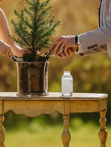 Ritual da Planta ou Árvore: O casal planta uma árvore ou planta escolhida, que representa o crescimento da sua união.
